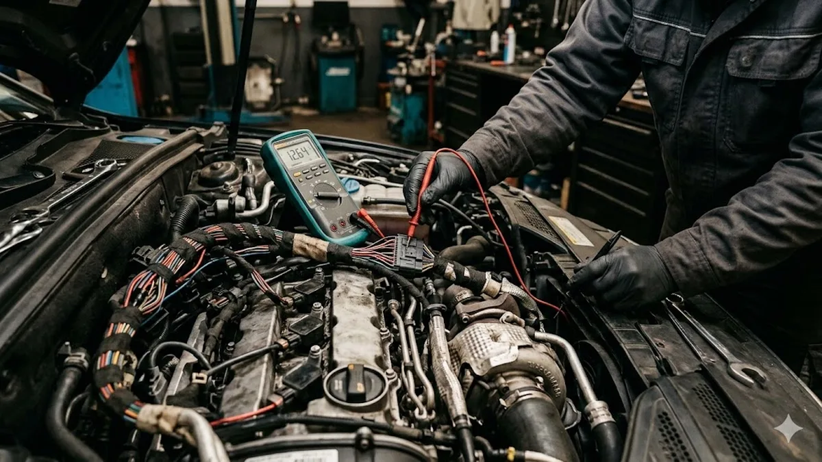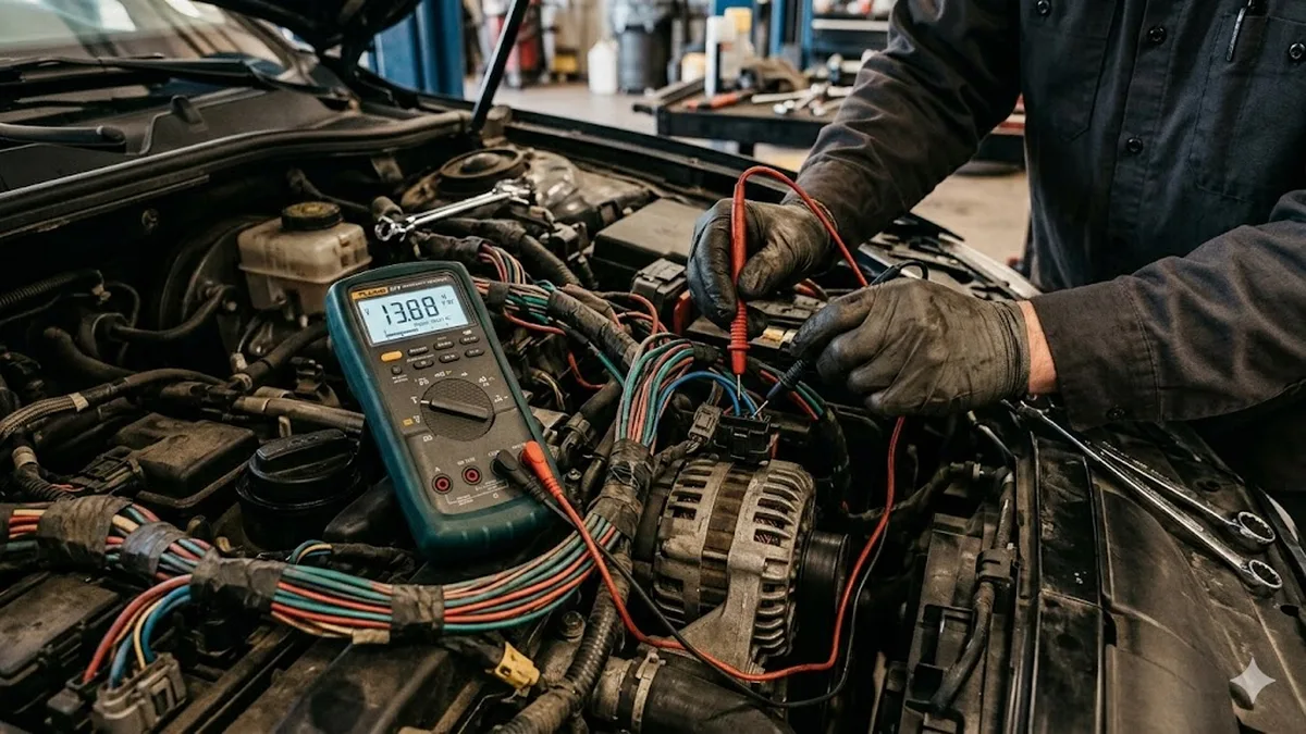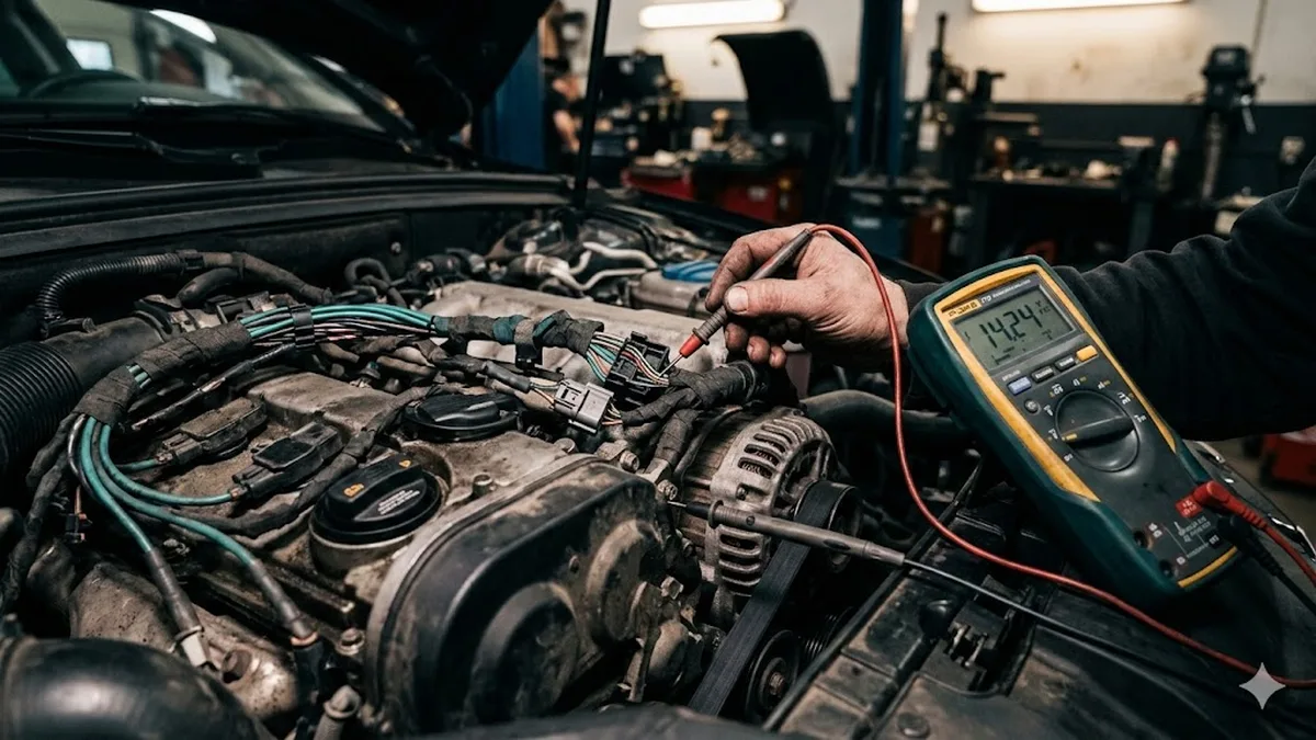 Lichtmaschine schwach oder defekt: Batterie-Warnung, Unterspannung, flackernde Scheinwerfer. Diagnose: Ladespannung messen, Dioden-Test, Regler-Check.